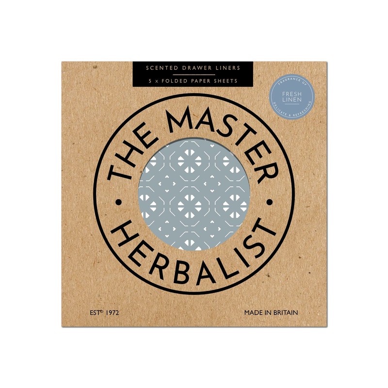 - The Master Herbalist Fragrant FRESH LINEN Scented Drawer Liners in a GEOMETRIC PRINT in DUSK BLUE (FOLDED) Also available in: LAVENDER & NEEM OIL - Anti Moth (Soft Grey) and NEROLI & BERGAMOT (Helebore Pink)