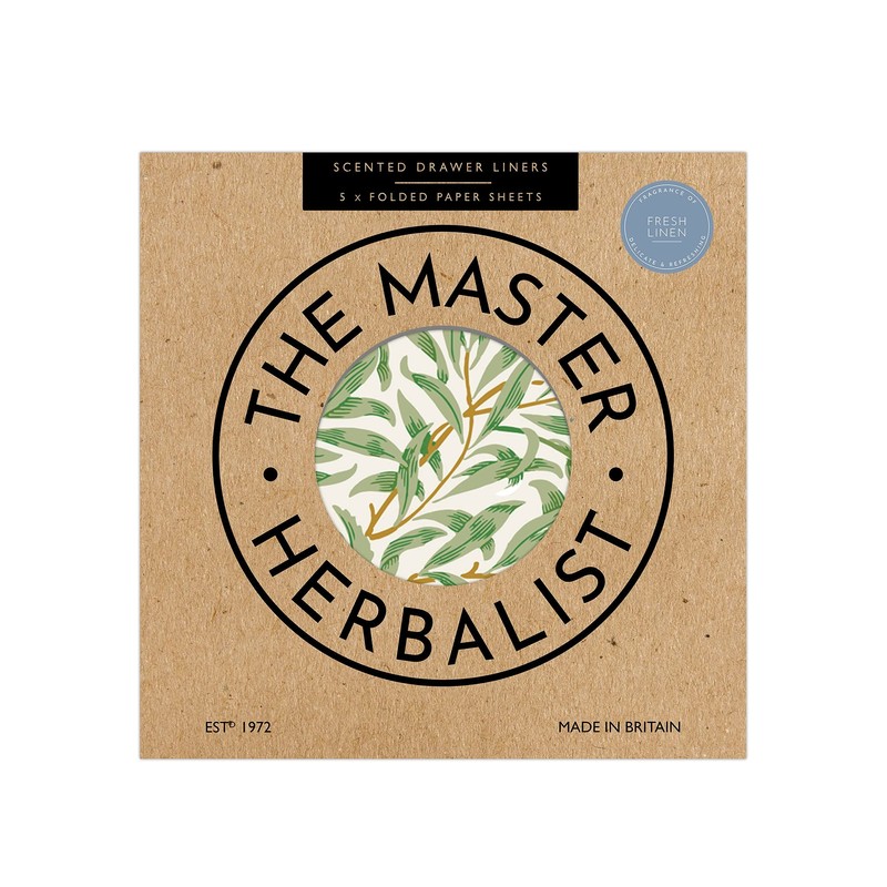 The Master Herbalist FRESH LINEN Scented Drawer Liners in a WILLIAM MORRIS Design (FOLDED) | Pack of 5 Sheets | Contains Essential Oils