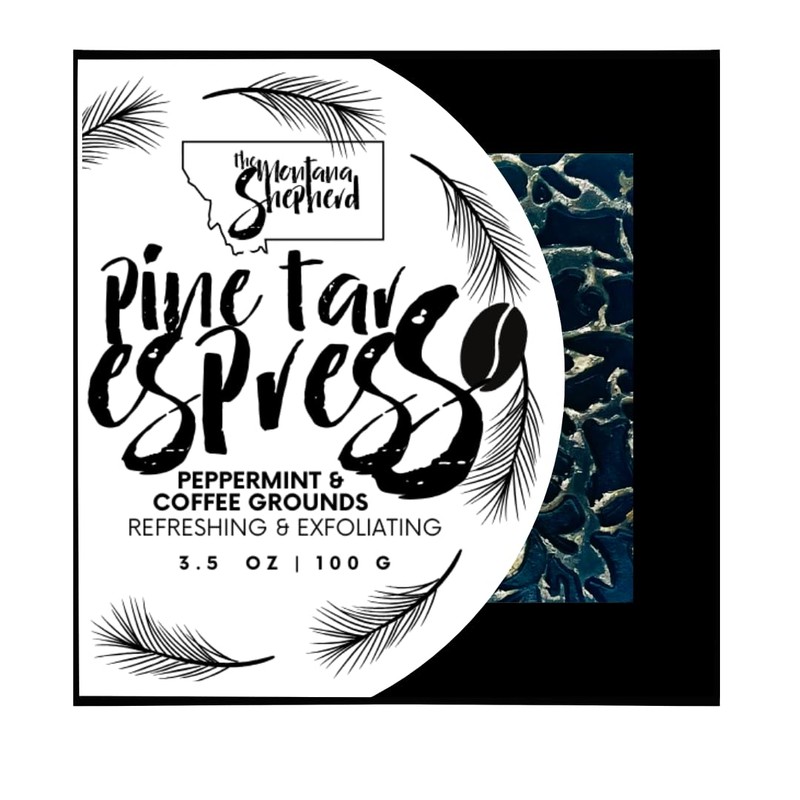 The Montana Shepherd The Montana Shepherd Pine Tar Espresso Soap Bar 3.5 oz | 100 g | Peppermint | Espresso Grounds | Refreshing | Exfoliating | Nourishing | All-Natural