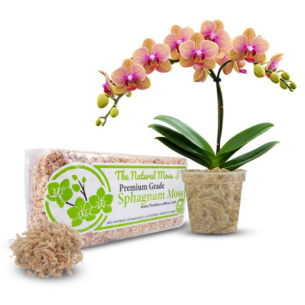 The Natural Moss, Inc Premium Chilean Sphagnum Moss 150 Grams/0.33 pounds, Premium Moss Dried, Long Fiber Moss Perfect for Healthy Orchids & Plants Growth, Moss for Orchid and Plant repotting