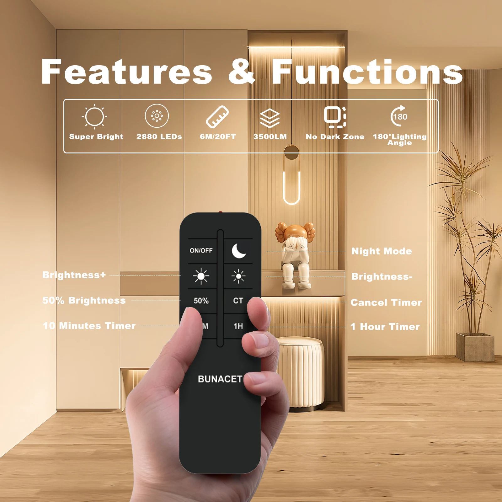 The Newly Designed Led3000k 6500k Light Strip Monochrome Kit and Rf Remote Dimming Led Strip KitLamp Power(W): 24, Length: 12M*2, Color: 6500K, Emitting Color: Warm white