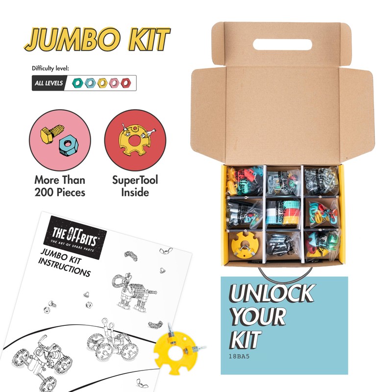 The Off bits Jumbo Kit Build Your Own Robot Toy, Educational Montessori Play Kit, Stem Building Toys Kids Nuts and Bolts Set for Family and Group Play, Engineering Kit for Kids Ages 6 7 8 9+