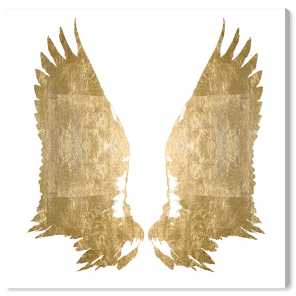The Oliver Gal Artist Co. Fashion and Glam Wall Art Canvas Prints 'My Golden Wings Foil' Home Décor, 24" x 24", Gold, White