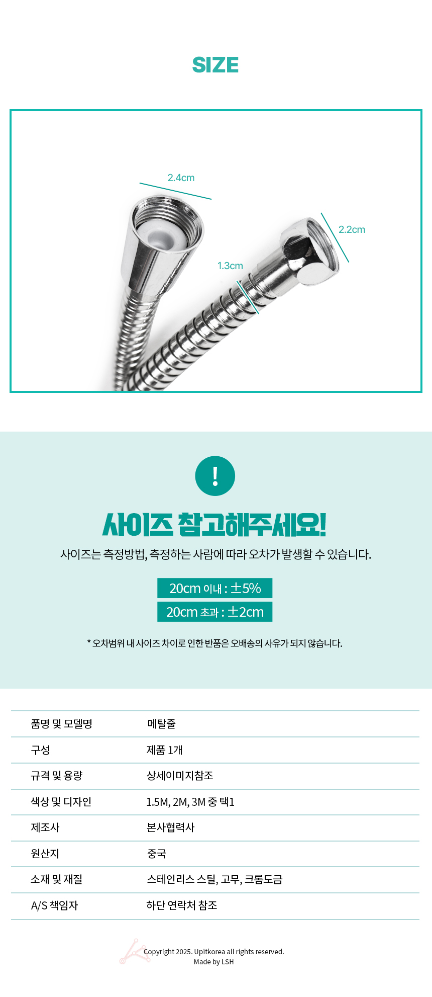 The Ondam metal line shower hose shower hose Bathroom hose 2M
