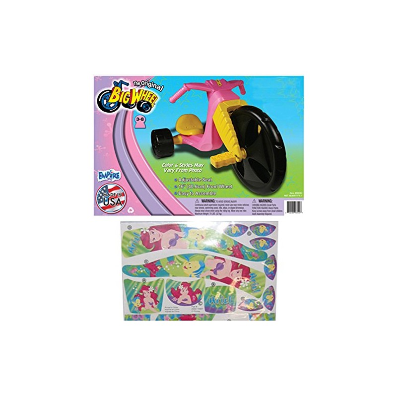 The Original Big Wheel Trike Black/Pink Limited Edition for Girls 16" w/ARIEL The Little Mermaid Decals