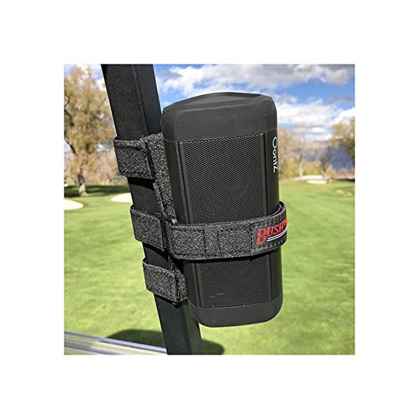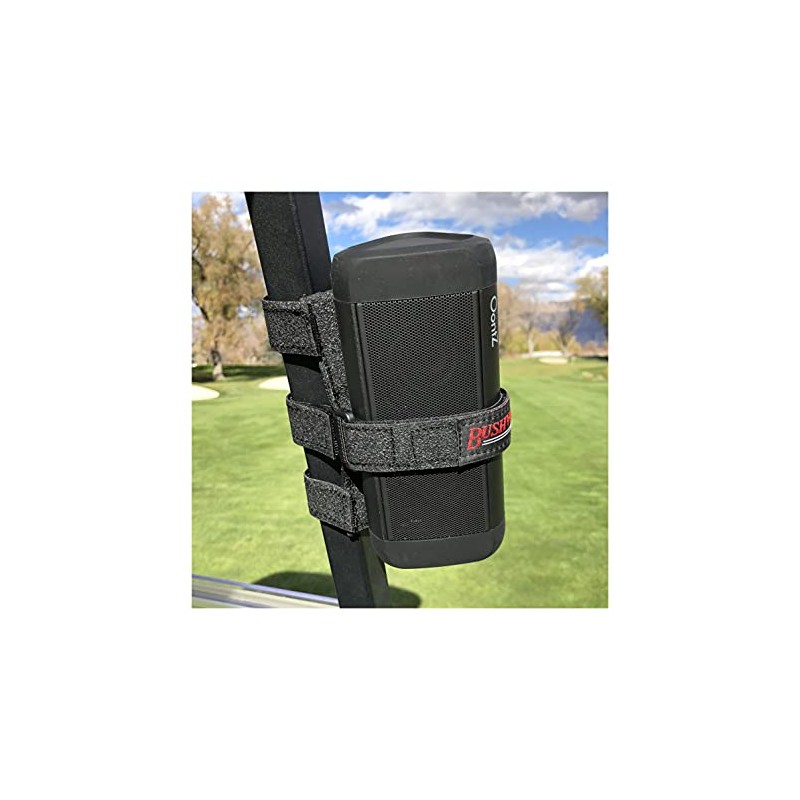 The Original Bushwhacker Portable Speaker Mount for Golf Cart Railing - Adjustable Strap Fits Most Bluetooth Wireless Speakers Attachment Accessory Holder Bar Rail