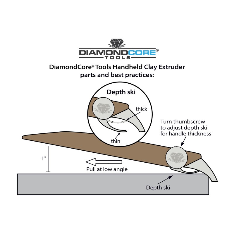 • [The Original DiamondCore Tools Handheld Clay Extruder, 4-Pack Variety Set]: The industry's premium handle making tool that’s also perfect for vessel feet and other hand-building projects. Featuring an adjustable-depth-ski, a sleek wooden handle, and a precision stainless-steel blade, it effortlessly cuts clean clay strips for effortless attachment. Emblazoned with our signature DiamondCore logo, the thumb screw allows for easy thickness adjustment without disrupting your flow.