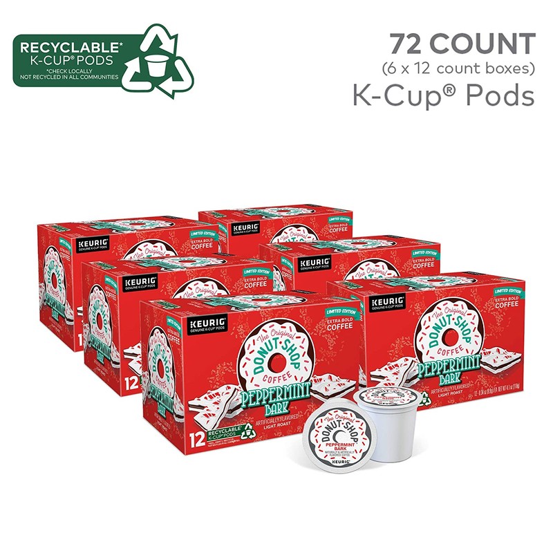 The Original Donut Shop Peppermint Bark, Single-Serve Keurig K-Cup Pods, Flavored Light Roast Coffee, 72 Count
