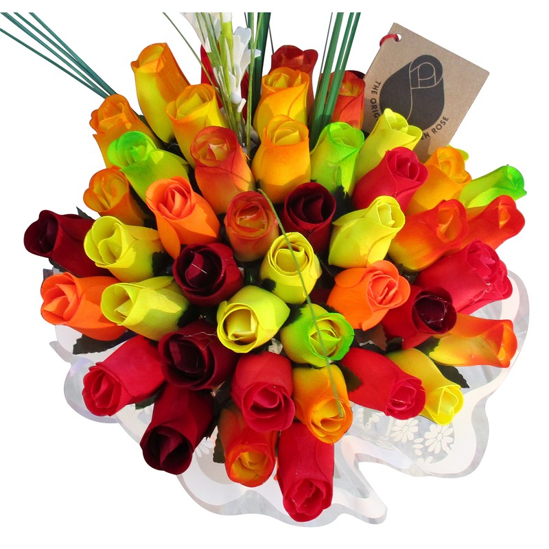 The Original Wooden Rose Fall Harvest Festival Thanksgiving Flower Bouquet Closed Bud (3 Dozen)