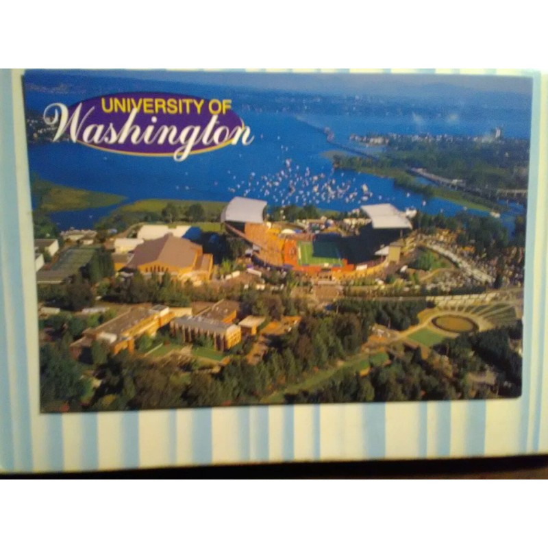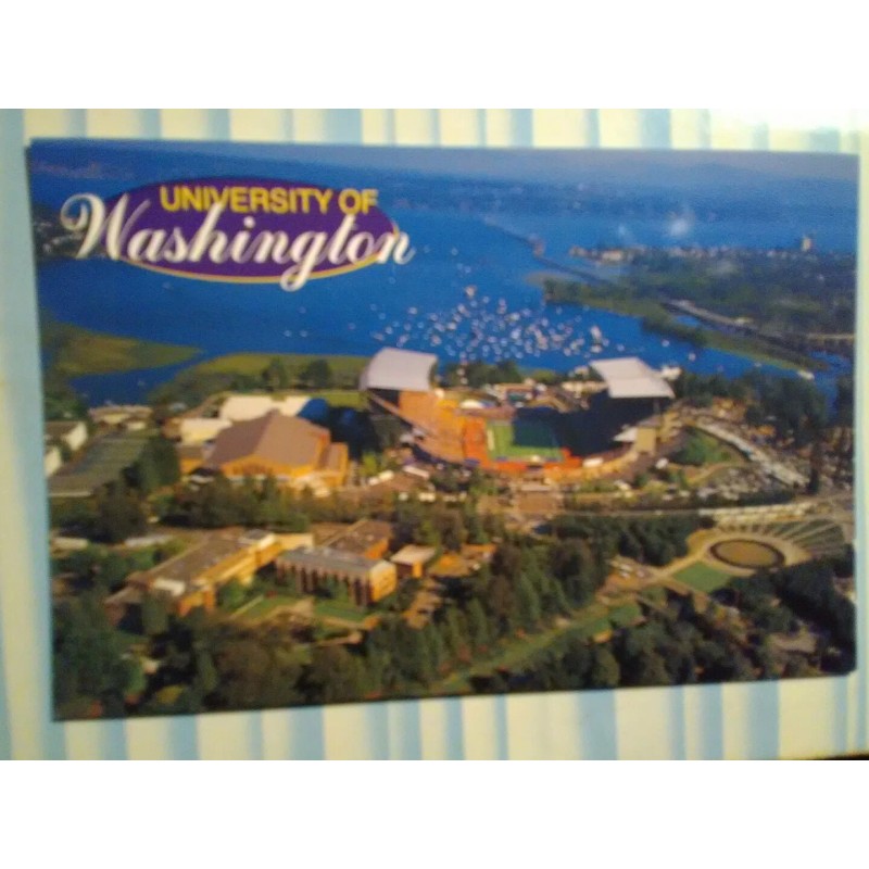 I AM OFFERING A RICH AMAZING PHOTO POST CARD AERIAL VIEW OVER THE UNIVERSITY OF WASHINGTON A RICH COLOR CARD WITH A GREAT VIEW OVER LAKE WASHINGTON AND THE FLOATING BRIDGE.   A GOOD AERIAL VIEW OVER THE CAMPUS OF U OF W  A RICH PHOTO POST CARD.