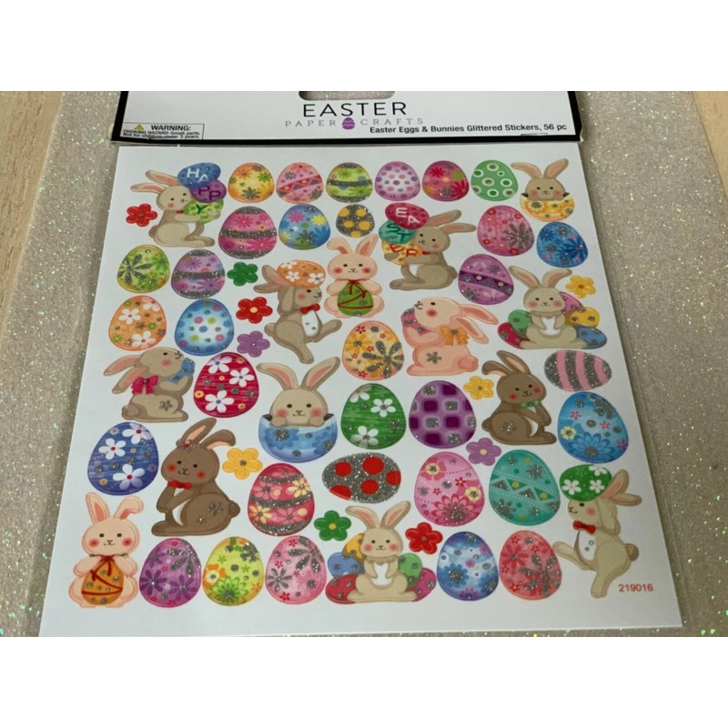 The Paper Studio EASTER PAPER CRAFTS EASTER EGGS & BUNNIES GLITTERED STICKERS RABBITS 56PCS