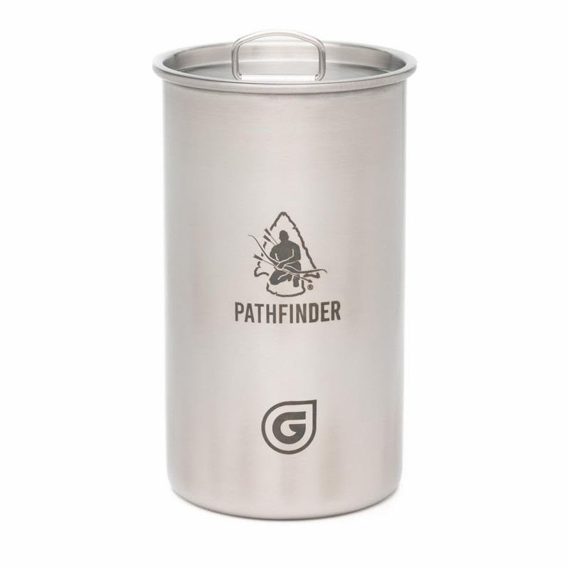 The Pathfinder School X Geopress Nesting Cup with Lid – Heavy-Duty Stainless Steel Camping Cup with Graduated Measurements – Bat Wing Handles – Ideal Outdoor and Backpacking Gear, 30oz/900ml Capacity