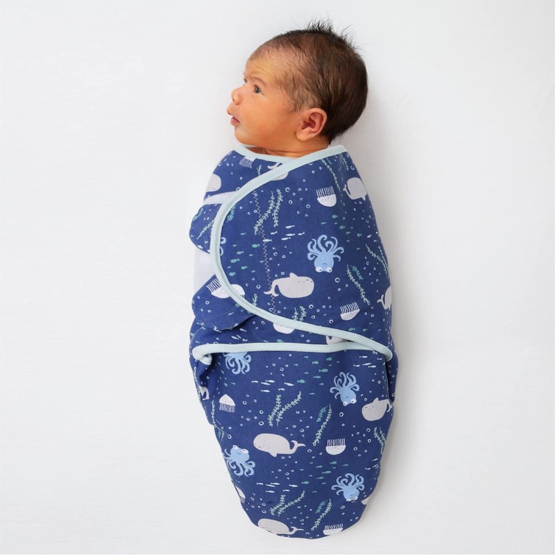 - 3 NAUTICAL DESIGNS: Your baby boy or girl will always be snuggled up with the Under The Sea swaddle blanket set from The Peanutshell. This gender neutral set includes a whale-y cute sea life toss print on a navy background, a sealion wavy stripe, and a light aqua burst inspired by coral reef formations.