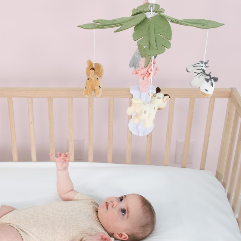 The Peanutshell Crib Mobile for Girls - Soft Pink Musical Baby Crib Mobile with 12 Lullabies, Cute Animal Baby Wildest Dreams Nursery Decor