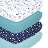 The Peanutshell Crib Sheets, Neutral, Fitted Baby Bed Sheet Set, Standard Size Crib Mattress, 52x28, Stars Moon Space Nursery Decor, 4 Pack in Navy Blue, Teal, White