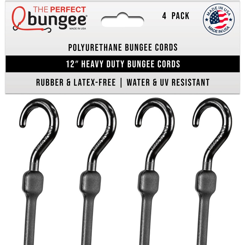THE PERFECT BUNGEE 12" Easy Stretch Cord 4 Pack, Black