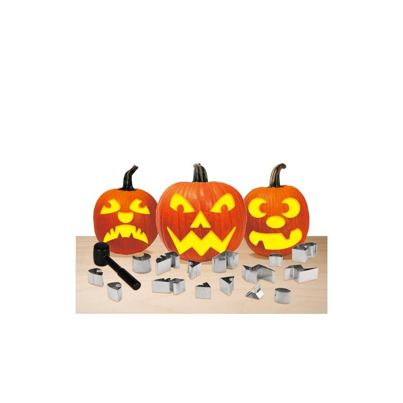 - Complete Pumpkin Carving Set: Includes 15 stainless steel metal punch in stencils and plastic hammer for detailed and precise designs, perfect for creating intricate patterns and decorations on pumpkins