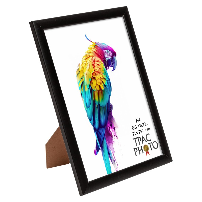 - A4 (21x29.7cm) Rectangular Frame Made From Black Painted Pine Wood. Supplied Shrinkwrapped and Boxed