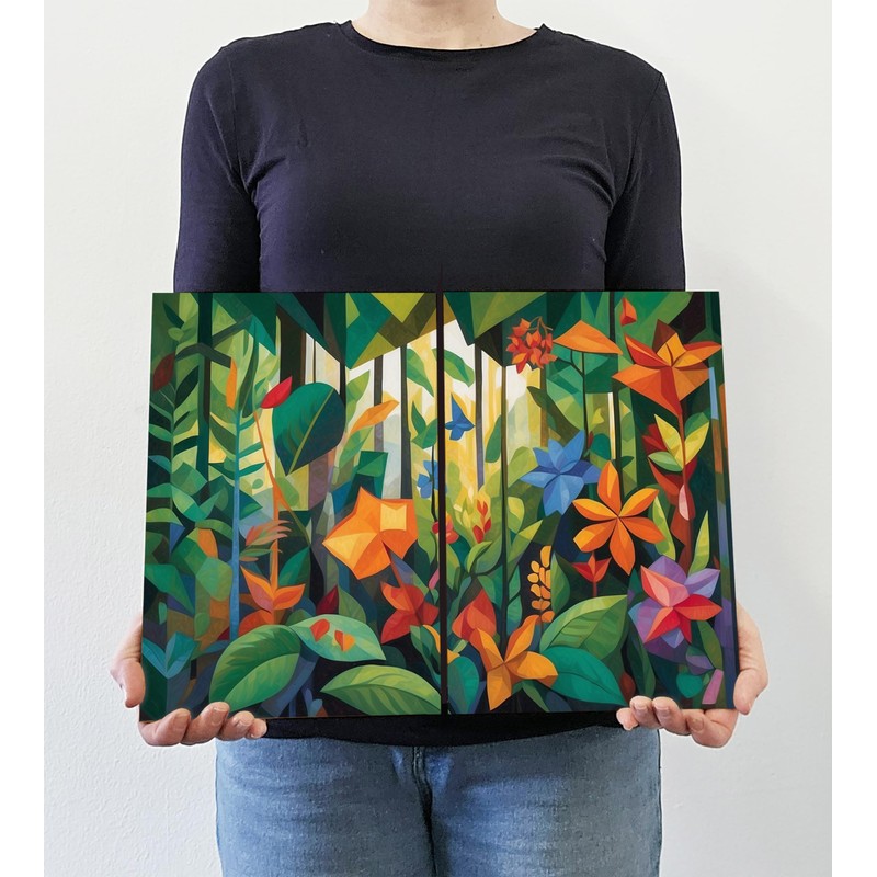 - 🎨 Dive into a cubist dreamscape with this abstract rainforest wall art, boasting a riot of colors on dual A4 MDF panels.