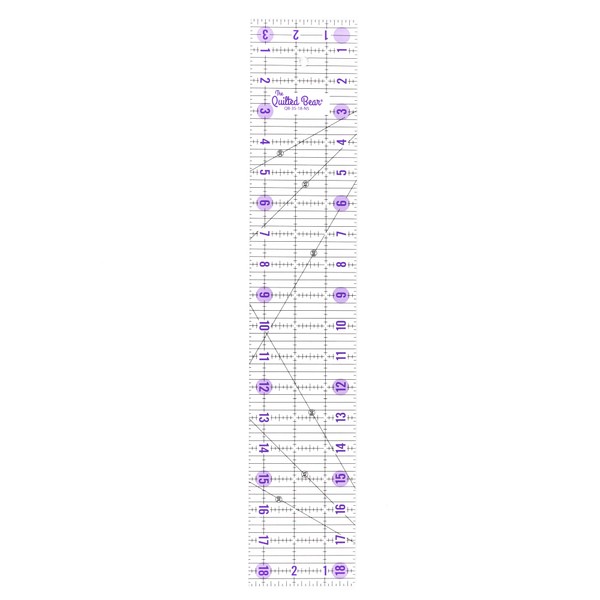 The Quilted Bear Quilting Rulers - Transparent Acrylic Non Slip Quilting, Patchwork & Sewing Ruler with Clear Black Lines & 30, 45 & 60 Degree Angles (3.5" x 18.5")