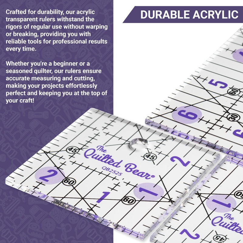- Quilters rulers need strong and clear lines. This ruler doesn't disappoint! Two tone ruler uses the colours Purple & Black to make sure your quilters grid is easy to see on multiple different fabric designs and templates.