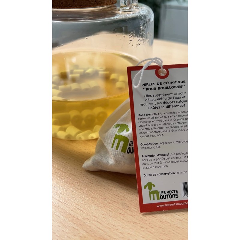 - Take the 25 beads out of the bag, rinse and place them loose in the water tank of your kettle or coffee machine. For optimal effect, let the beads stand constantly in the tank, even when the water is boiling
