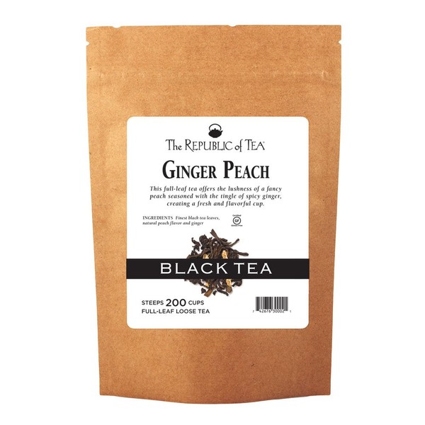 The Republic of Tea Ginger Peach Black Full-Leaf Loose Tea 1 lb Bag | Steeps 200 Cups | Caffeinated