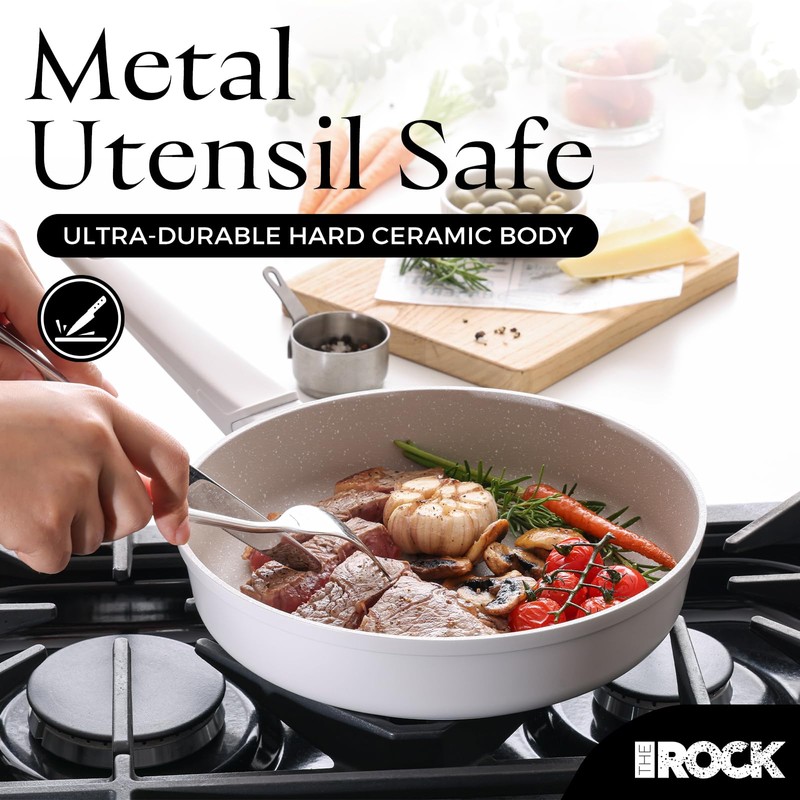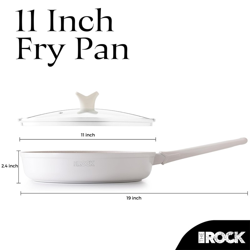 THE ROCK SOHO 11-Inch Non Stick Frying Pan with Lid–Nothing Sticks, Never Warps, Lasts Longer, Ceramic Non Toxic Skillet with Heat-Resistant Handle, PTFE PFOA&PFAS Free, Oven & Dishwasher Safe, Cream
