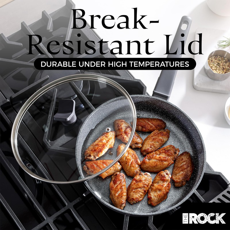 THE ROCK SOHO 9.5-Inch Nonstick Frying Pan with Lid – Compact for Urban Kitchens, Nothing Sticks, Never Warps, Lasts Longer, Oven & Dishwasher Safe, Black