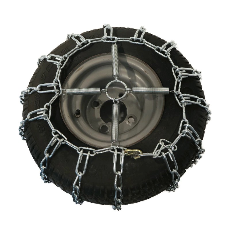 - Includes - (1) Pair of Zinc-Plated, 2-Link Tire Chains & (1) Pair of Chain Tensioners; comes as shown in the first image. Tires NOT Included. Please Note: Tire chains in picture are a representation. They are not the exact tire chains you will receive