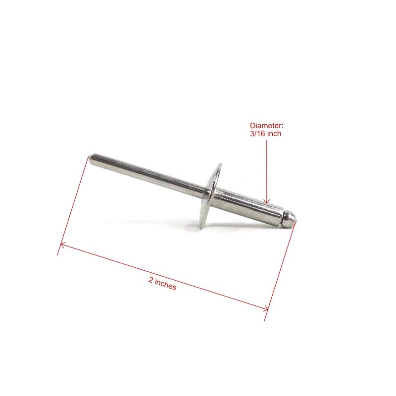 - Specs - Rivet Type: Aluminum Plain. Rivet Type: 3/16 x .70 D-SS. Rivet Type: 1/4 x 1/2 D-ALU. Nut Type: Self-Threading 5mm x 10mm 15mm. Refer to images 2 & 3 for more information