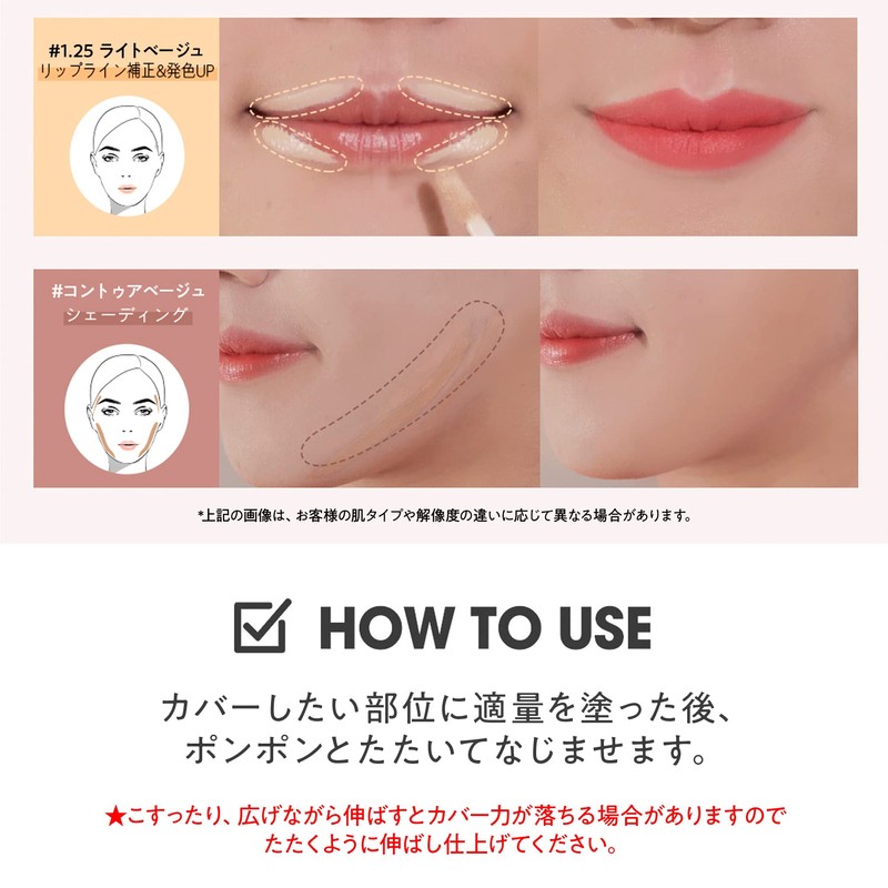 - Use it to finish base makeup, after foundation, and BB cream Gently apply and blend in to the areas you want to hide