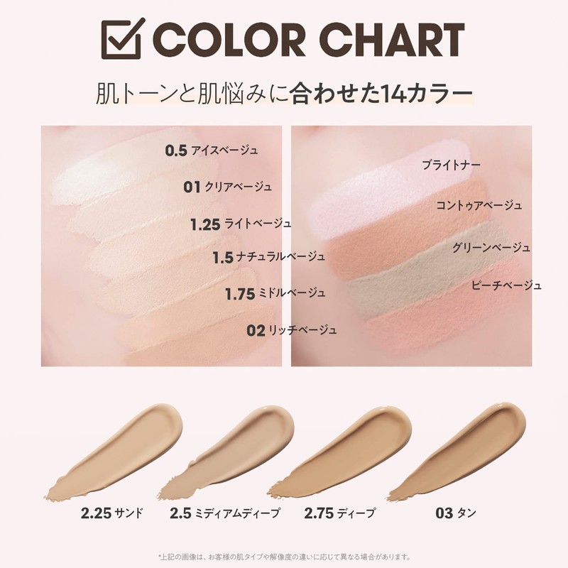 - The 14 color variations are available to accommodate a variety of skin problems, providing you a base of makeup with zero imperfections