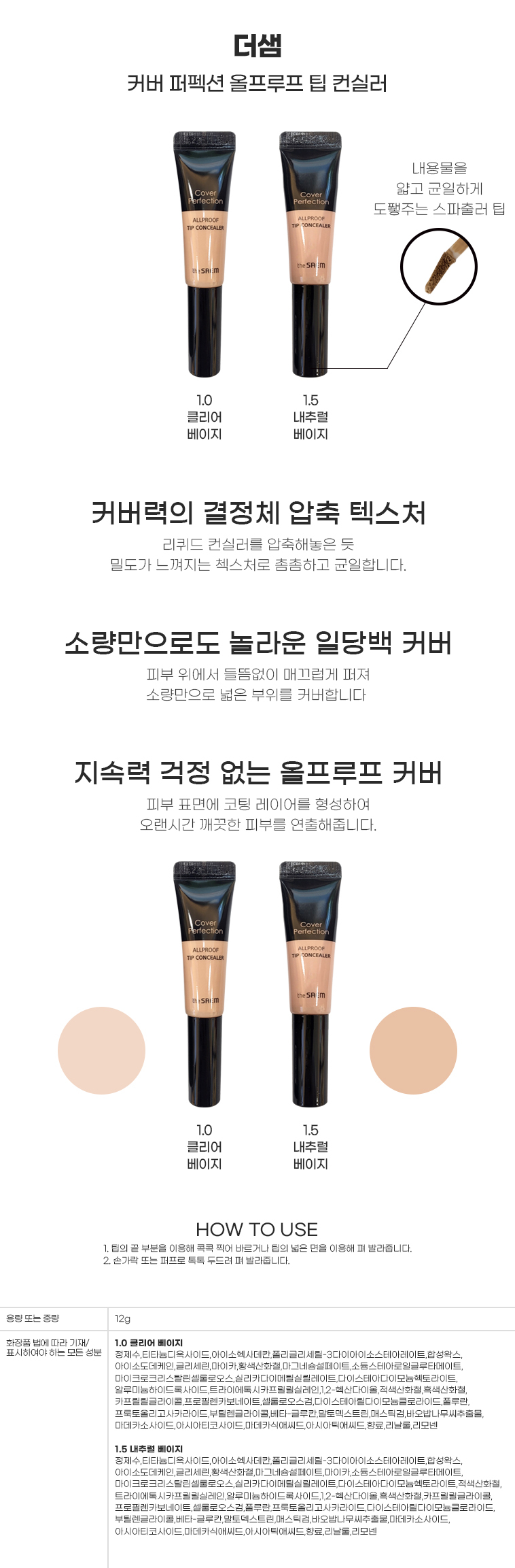 더샘 커버 퍼펙션 올프루프 팁컨실러 1.5 내추럴베이지