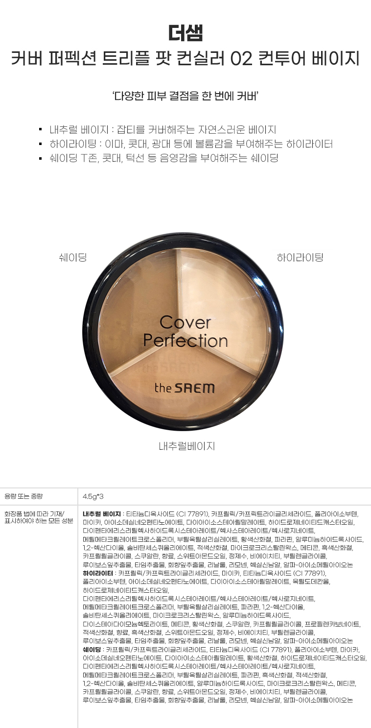 The Saem Cover Perfection Triple Pot Concealer 02 Contour Beige (until 25.09.07) / 더샘 커버 퍼펙션 트리플 팟 컨실러 02 컨투어 베이지 (25.09.07까지)