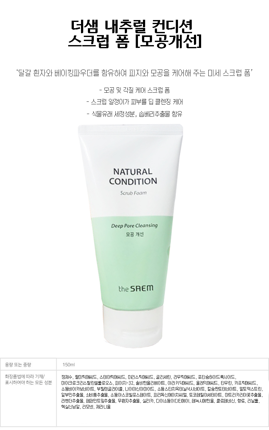 The Saem 더샘 내추럴 컨디션 스크럽 폼 The Saem Natural Condition Scrub Foam