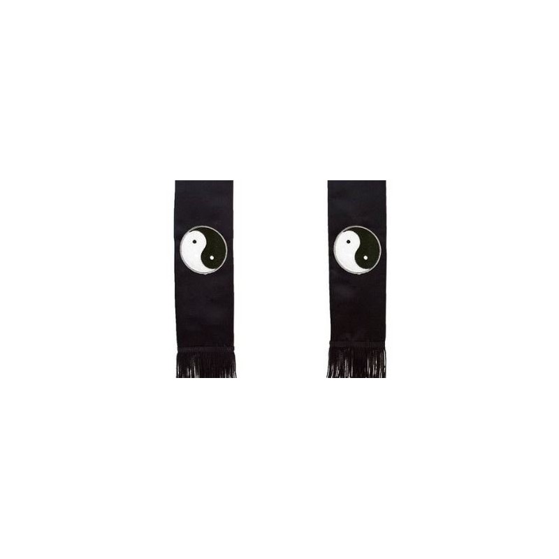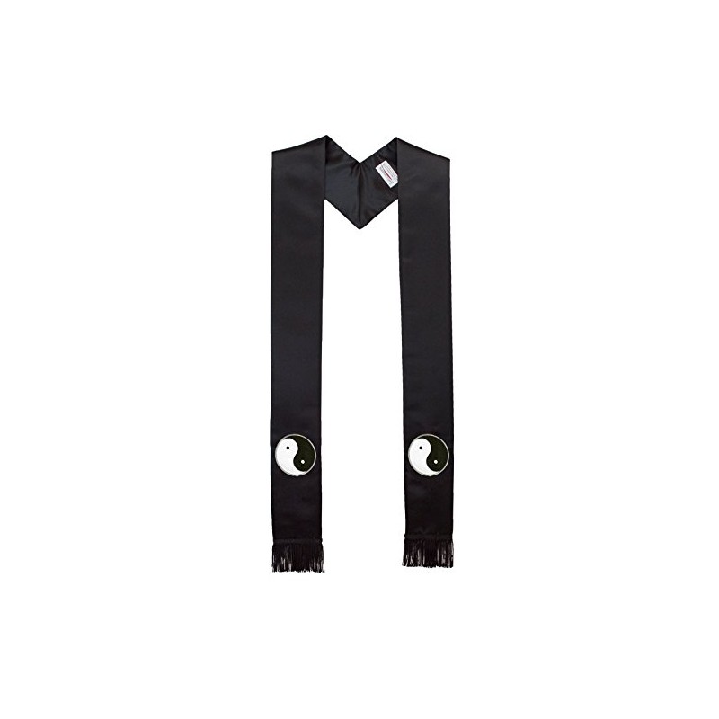 This is a clergy stole made of 100% polyester ultra satin with Embroidered Yin and Yang symbol on the front. Comes in Black (with Fringe), White (with Fringe), Blue (Standard), Pink (with border), Purple (with Honor Gold Border & Fringe), White (with White Border and Cream Fringe), White (With Cream Border and Black Fringe), White (with Rhinestones - Deluxe Dazzling version), White (Double White/Black Border with Black Fringe), and Red (With Black and White Double Border and Black Fringe).
