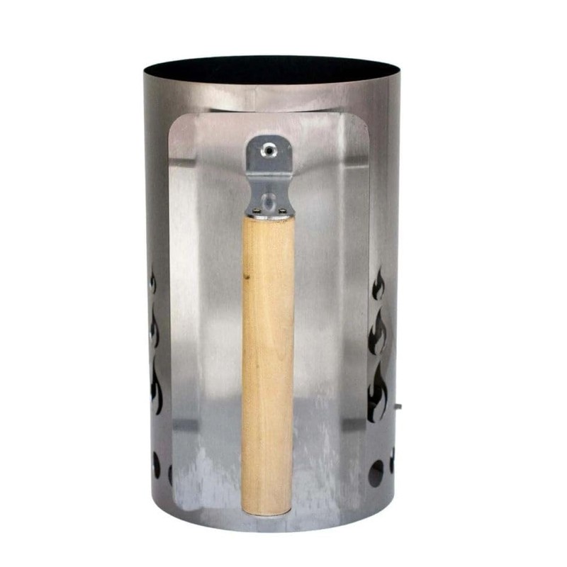 - To use: Simply stuff a few pieces of crumpled newspaper on the grate, load your charcoal on top, and light it up from underneath — no lighter fluid, no endless blowing. In just 5–10 minutes (depending on briquette type), your coals will be glowing and ready to fuel your grill. Finished with a hardwood handle secured with brass nails for a safe, comfortable grip, this chimney starter saves time and effort so you can focus on what matters: time spent with family and friends.