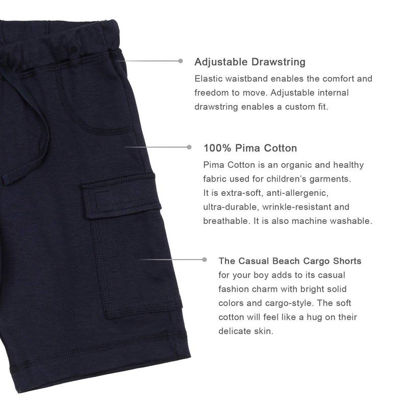 - The Casual Beach Cargo Shorts for your boy adds to its casual fashion charm with bright solid colors and cargo-style. The soft cotton will feel like a hug on their delicate skin.
