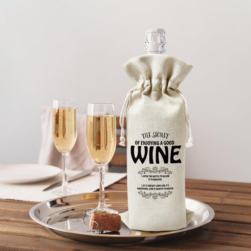 The Secret Of Enjoying Good Linen Wine Bags Gift - Drawstring Bottle Bags for Women & Men - 1 Pack Reusable Burlap Bag - 03