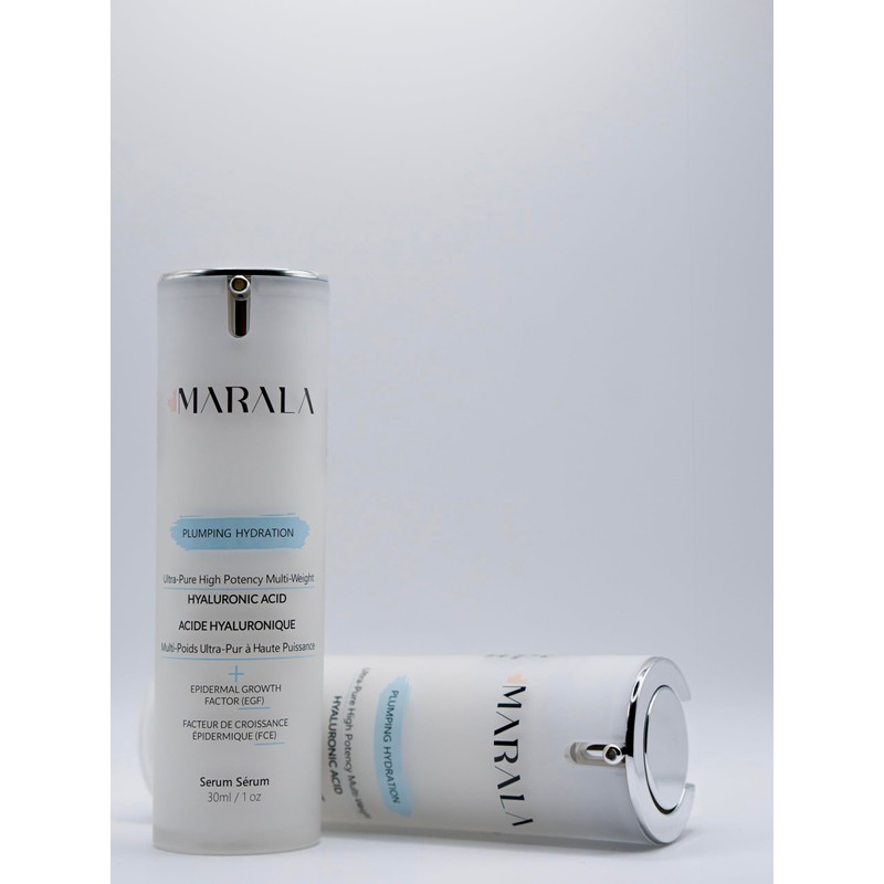 The Serum by Marala Clean & Natural Ingredients For Radiant, Healthy Skin. Professional grade skincare with active ingredients: Multi Weight Hyaluronic Acid and Epidermal Growth Factor Peptides; 30 ml / 1oz