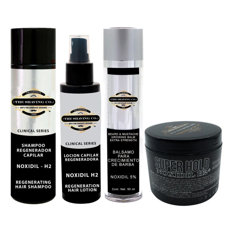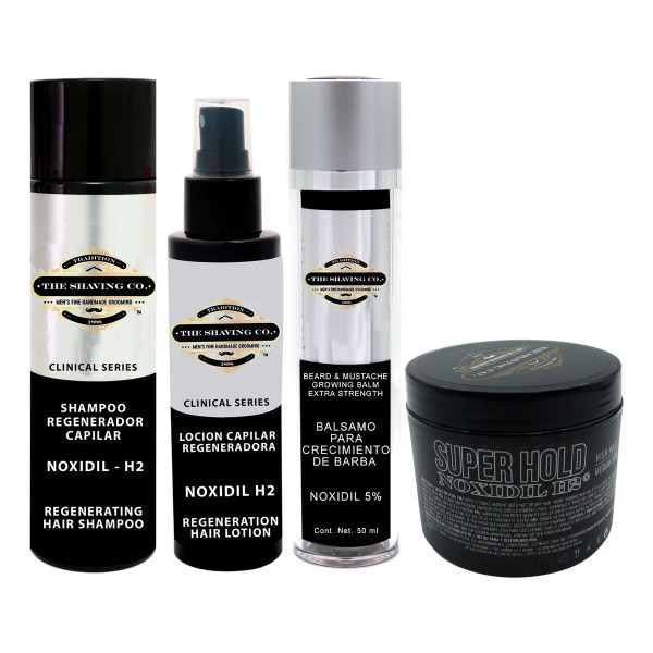 💇 The Shaving Co. Kit Completo Noxidil 4 Piezas Crecimiento Barba y Cabello
