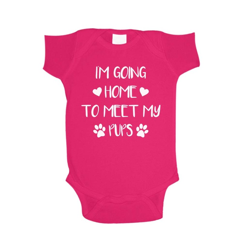 The Shirt Den I'm Going Home To Meet My Pups Baby One Piece NB Cyber Pink