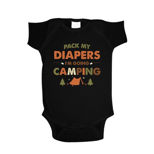 The Shirt Den Pack My Diapers I'm Going Camping Baby One Piece 6 mo Black