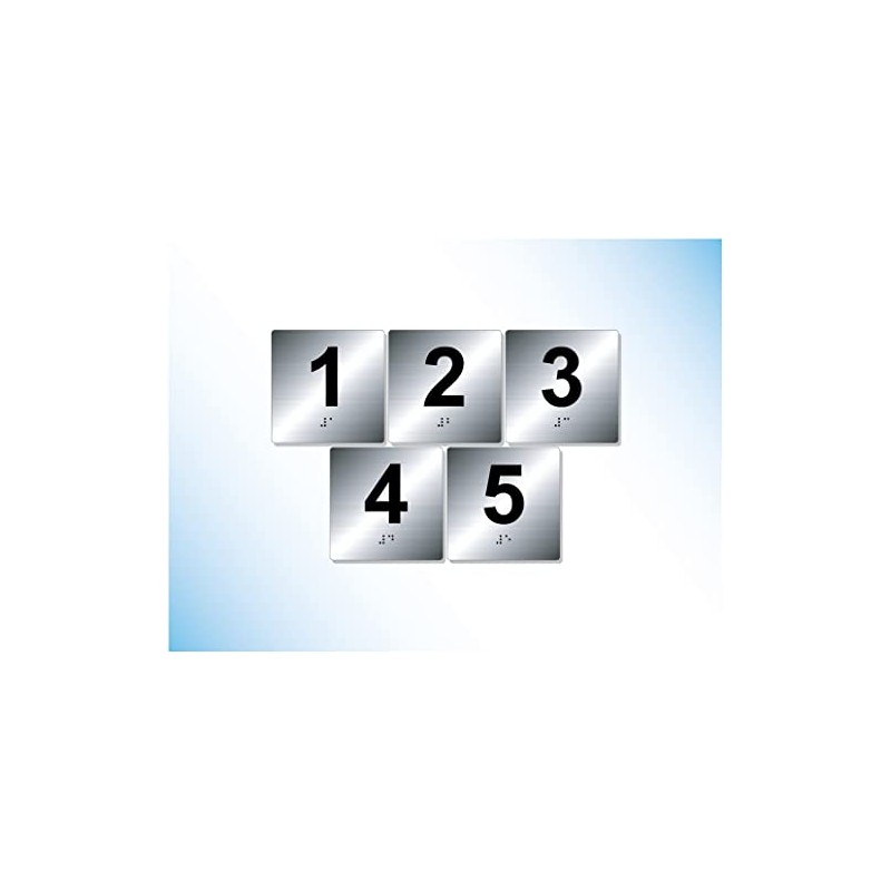 The Sign Studio – 4” x 4” – Exam Room Numbers 1-5 - Braille/Tactile Identification Signs Used for Exam Rooms and Offices – (Brushed Silver/Black)