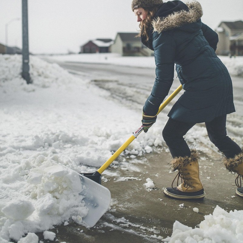 - Chip packed snow and ice: Flip over to use cutting angle to separate packed snow or chip away at ice