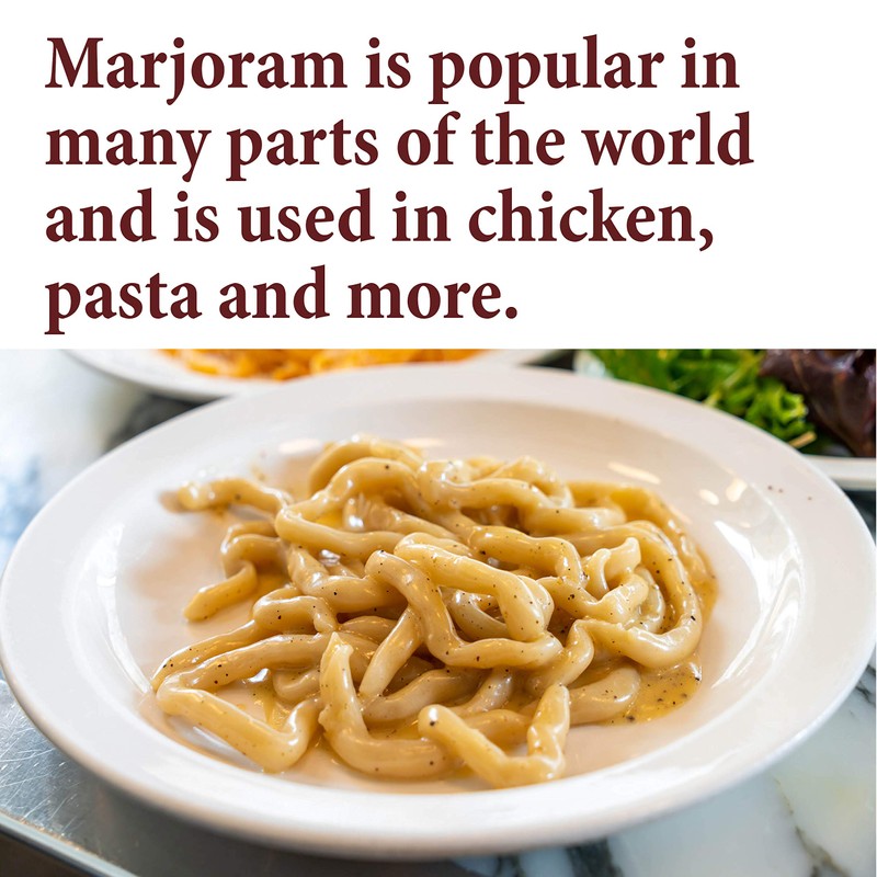• MARJORAM LEAVES - a flavorful herb, which adds a minty warm flavor and aroma to many dishes from soups to pasta and meat..