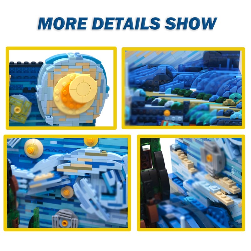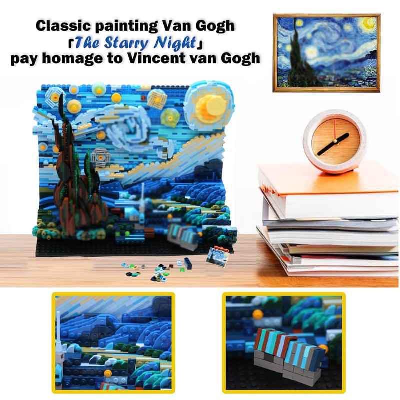 - [Fantastic Gifts]:For Van Gogh art fans or toy building challengers, this toy reproduces the fantasy scene of the original painting of the starry and moonlit night, and feels the impactful colors and lines of Van Gogh's pen.Building toys harness our creativity and rewire our brains to make 'connections'.Brain game for adults and children.