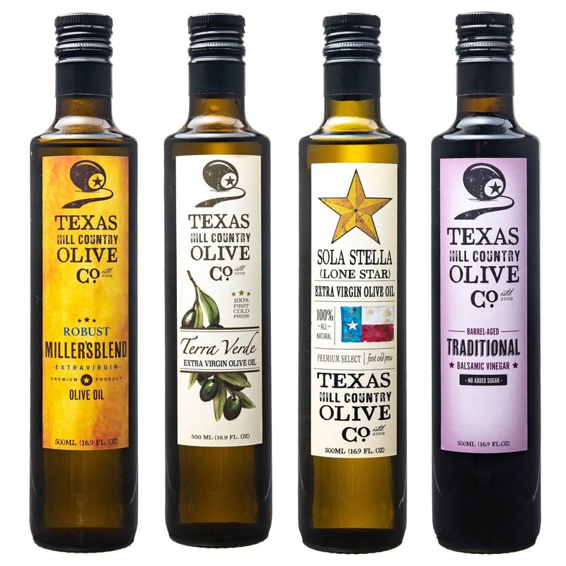- Gift Set Includes: Texas Miller's Blend 500ml, Terra Verde Estate Blend 500ml, Sola Stella 500ml, Traditional Balsamic 500ml