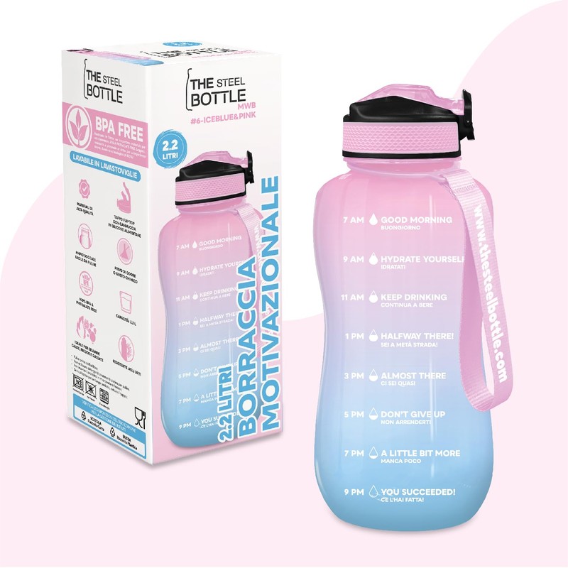 - MOTIVATIONALE SÄTZE: Dank der Zitate in Italienisch und Englisch und den Zeiten auf der motivierenden Flasche können Sie Ihren Flüssigkeitsgrad immer im Auge behalten. Es wird viel einfacher denn je sein, zu jeder Tageszeit die richtige Menge Wasser zu trinken!